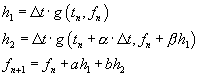 Now we are ready to write our estimate for the function at the next time using the four parameters