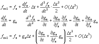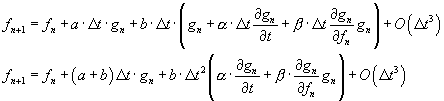 The Euler method is using one function evaluation and is accurate to the first order. The Runge Kutta methods can be tuned to the desired accuracy by doing more function evaluations. If highly accurate results are desired the Runge Kutta techniques are the method of choice, with sufficiently small time step we can make the solution (locally) very accurate. Here is an example of the design of a Runge Kutta method of a second order accuracy. Define