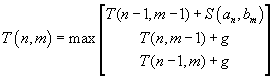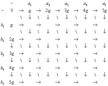 optimal scores for the first row and column of the dynamic matrix. It is also