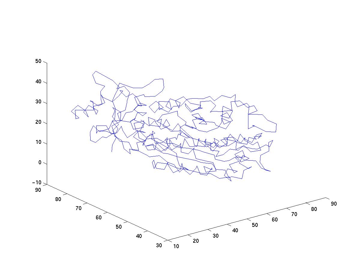 %plot3(coorCA(:,1), coorCA(:,2), coorCA(:,3)); % Plot the CA coordinates