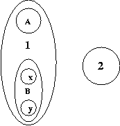 Here, clusters labeled A, x, y, and 2 are leaves, and clusters labeled 1 and B are compound. Let D(1,2) denote the distance between 1 and 2. Then, according to the project definition,