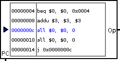 MIPS Program ROM. A 32-bit wide byte-addressed ROM, with built-in MIPS assembler. Use the attributes
