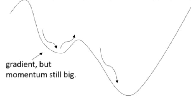 (i.e. still use some portion of previous gradient to keep you pushing out of small local minima.)