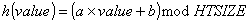 works well in practice. HTSIZE should be chosen to be a prime number.