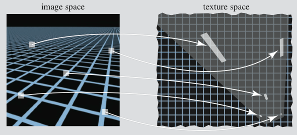 - When we need to sample a color from the texture, we can estimate the size of that pixel's footprint on the texture.