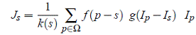 where k(s) is a normalization term. We use a spatial variance of 1.5% times the diagonal of the image and an intensity variance of 0.4.