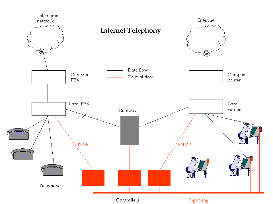 We are working in a multiparty audio conferencing plus whiteboard project in Phonedation, a start-up company that develops Internet Telephony products. Following picture shows what Internet Telephony looks like.