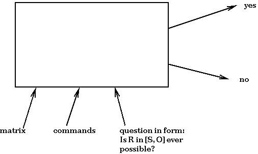 It would certainly be useful to have an analyzer that could answer the question: Is it possible for right r to be an element of [S, O] after some execution? Such an analyzer would provide a way to understand the ramifications of a given set of commands.