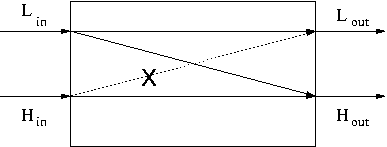 More generally, we can represent the execution of the program as a box with low and high inputs and outputs. The possible information flows through the program are represented here with arrows from input variables to output. There is only one flow disallowed in the execution of this program, and that is the flow from Hin to Lout: