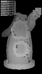For this project, we use Normalized Cross Correlation (NCC) measure for matching scores. The second animated gif is tentacle_ncc.gif, which shows slices of the NCC cost volume where each frame corresponds to a single depth. White is high NCC and black is low NCC.