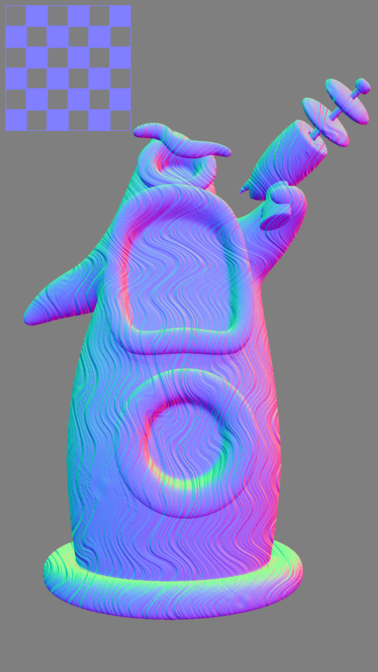 The correct outputs tentacle_normals.png and tentacle_albedo.png should look like the last two images shown.