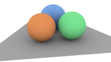 This sampling scheme is pretty inefficient for most scenes, but it does work. Here are two images generated from the test scenes three-spheres.xml and perp-lum.xml with 3600 samples per pixel: