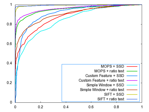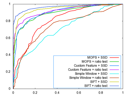 the ROC curve part, our custom descriptor outperforms the simple MOPS feature