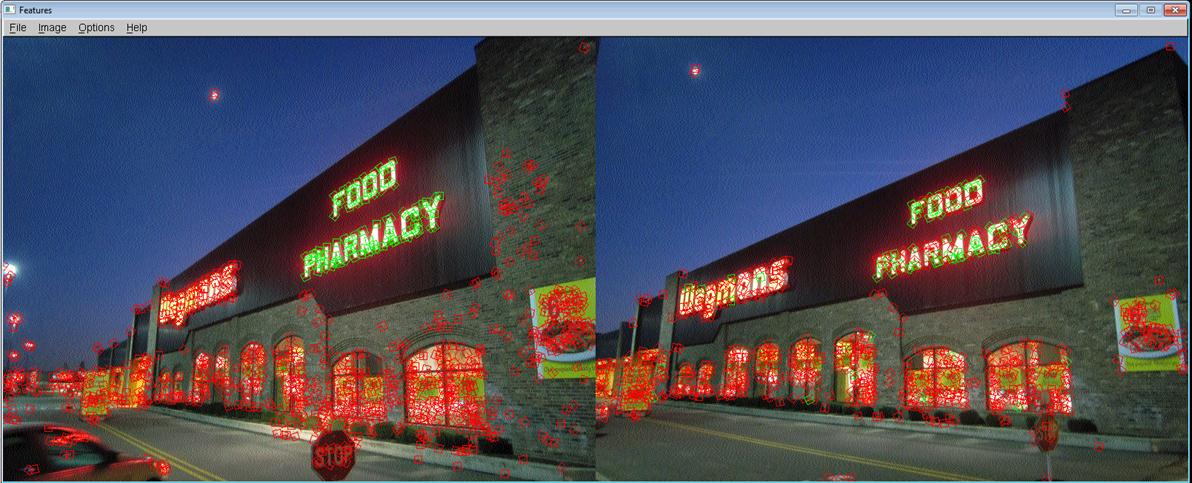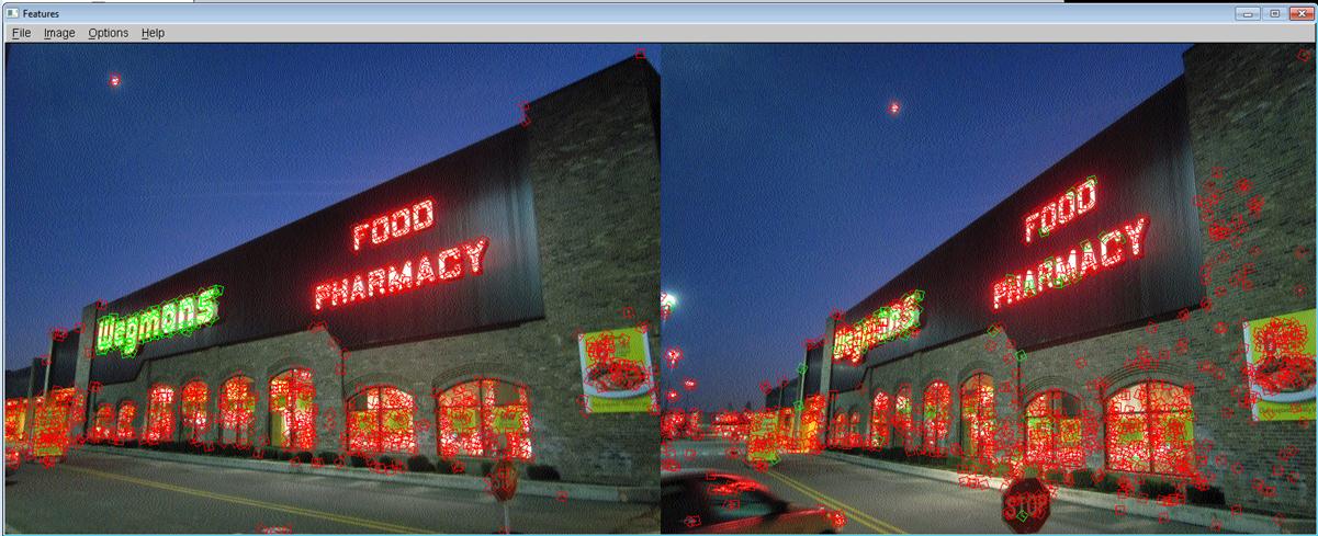 More mismatched features are found. The might be caused by (1) the text Wegmans on the