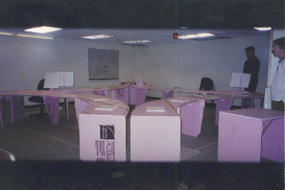 As part of the design process, Steve Weidner and David Schwartz constructed a full-scale mock up of the proposed lab.