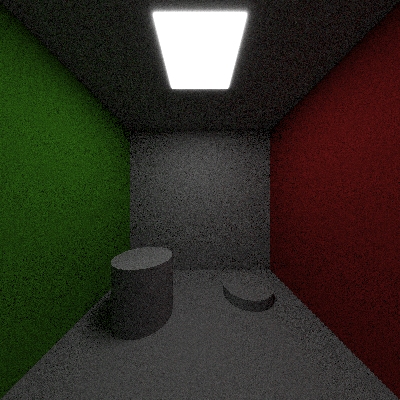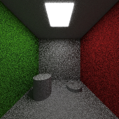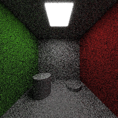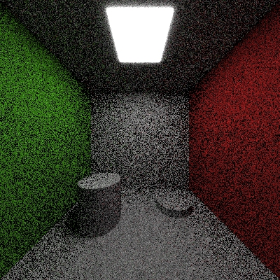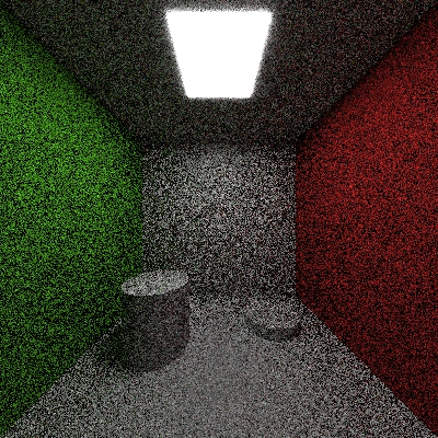 I implemented a very simple Montecarlo raytracer using a normal Montecarlo sampling and stratified sampling. I also added Next event estimation optimization, that reduces the noise a lot, but I should check better before being sure that the integration is completely correct (the image seems to be). The implementation is straightforward in RenderMan (about 30 total lines of code).