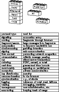 Next in the class hierarchy could be a protocol that deals with message loss and reordering. By adding a sequence number to each message, a receiver can detect that messages have been reordered or lost. It can then request a retransmission by returning a negative acknowledgement message. This requires the sender to remember each message it sent until it knows that the message has arrived. To give some idea of what other protocols may be needed in a complex distributed system, we provide a list of many of the protocol types used in Horus (see Figure 1).