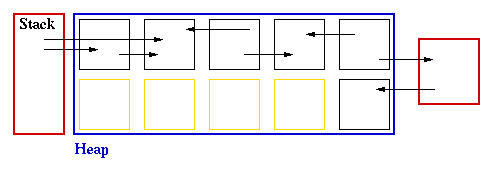 The algorithm I am describing is the one used by Bartlett to deal with conservative objects within the heap. His algorithm in the case where all objects in the heap are known is straightforward, and much more efficient than the following. Furthermore he has published results regarding refinements such as generations, and using a mark-compact phase ocassionally to reduce fragmentation.