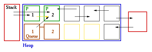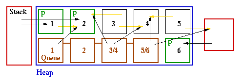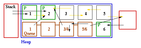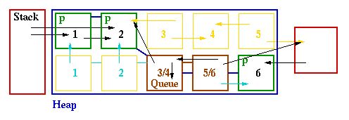 Phase II Perform copying collecting on the Queue, leaving forwarding pointers for the enqueued objects. But do not update the pointers within the objects. In other words all objects in the Queue point into fromSpace even after they have been scanned. Whenever a pointer outside the heap(i.e. a conservative object) is found, promote all pages pointed to by that object.