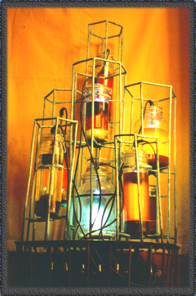 Steel, patinated copper, glass, oil, wires, ignition coils,