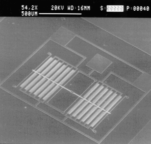 Micro Snap Fastener (Spring '95)A snap fastener is a deformable device consisting of a pair of mating surfaces that ``snap'' together during assembly. Because of the simple, linear assembly motion, snap fasteners have a wide range of applications in micro assembly tasks, e.g. for devices with multiple or layered components, or micro opto-mechanical plugs. At the micro scale, conventional types of fasteners like screws and hinges are unlikely to work due to present fabrication constraints and large friction forces. Micro snap fasteners also have great potential to be used in sensors with memory.