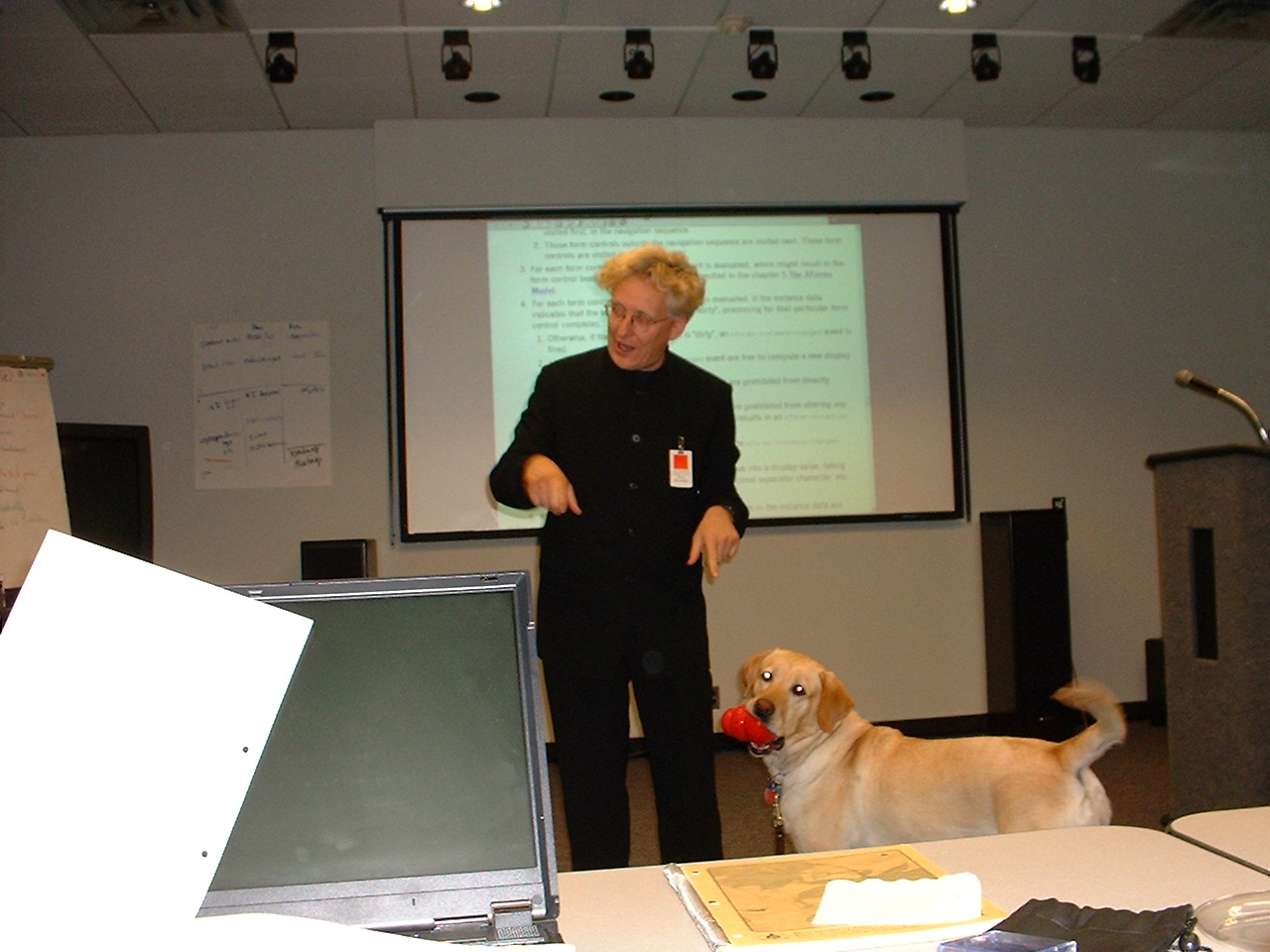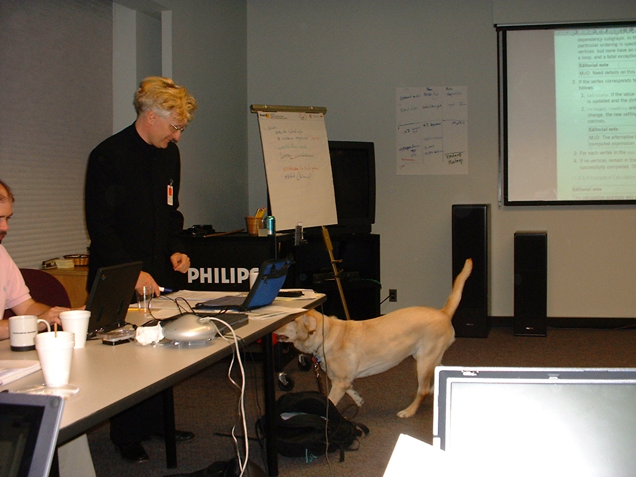 - Hubble looking at Steven Pemberton, who is writing on the flip