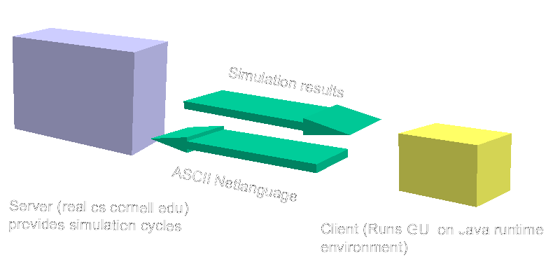 simulation server. The server connects to the GUI over a socket