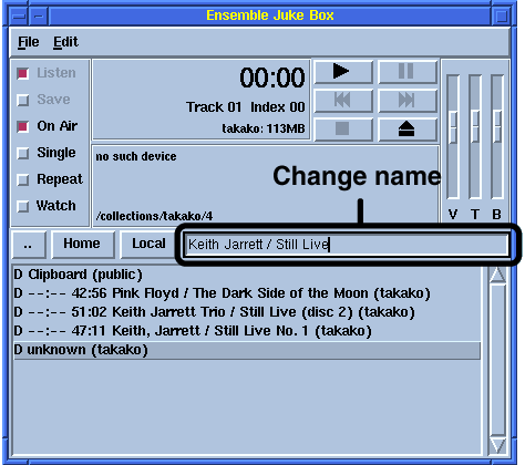 The next step is to create a new empty directory. This can be performed using the New folder operation in the File menu. The new folder is always named unknown; the name can be changed in the text entry.