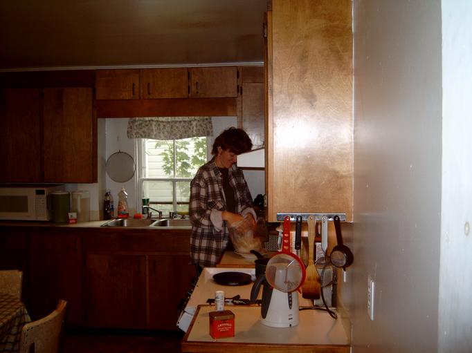 Lucia v kuchyni. To v sacku je asi karfiol. Alebo mozno buchty na pare. To znie lepsie. Mnam. |