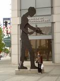 Muzeum moderneho umenia ma pred vchodom plechoveho chlapika co mava kladivom. |