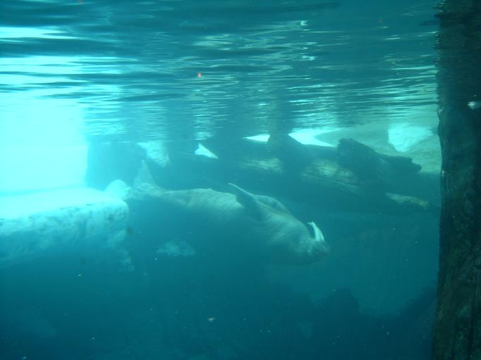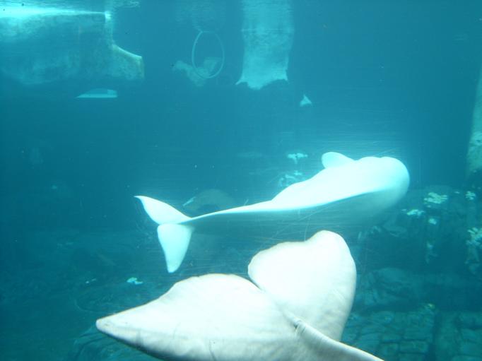 Biele velryby v celej svojej krase. Fotak bol trochu pomaly, kym odfotil, strcila nam pred nos druha velryba chvost. |