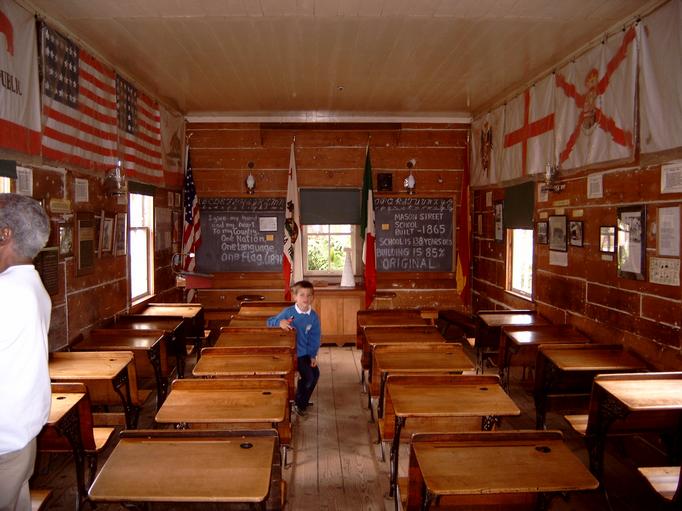 Mason Street School, je to prva postavena skola v San Diegu. Lavice boli ale pri rekonstrukcii, prvykrat v roku 1955, vymenene |