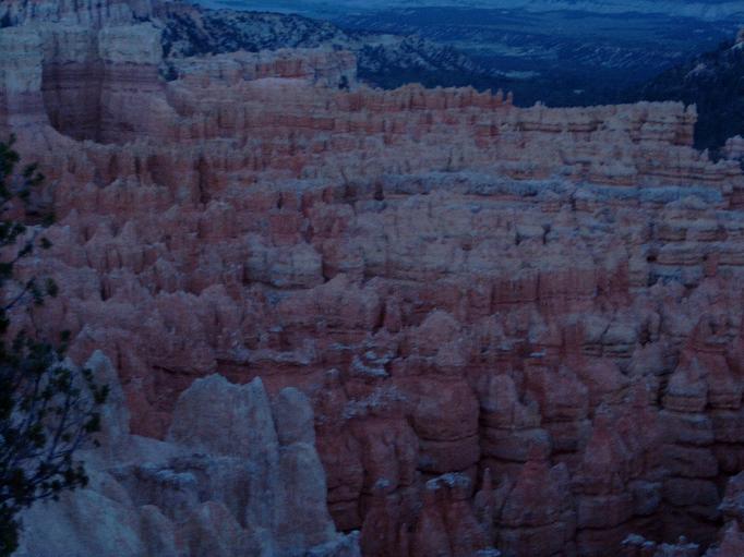 V pondelok (16.6) vecer sme dorazili do Bryce Canyonu. Uz sa stmievalo, ale ten pohlad dole stal za to. |