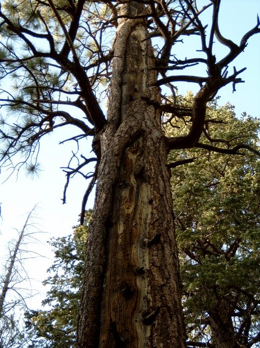 Tato borovica ma koru osupanu bleskom. Ked blesk svacne do stromu, tak zohreje miazgu pod korou ze ta vybuchne. Vraj sa nema cez burku stat pod osamelym stromom, a pravdepodobnost prezitia uderu bleskom je 75%.