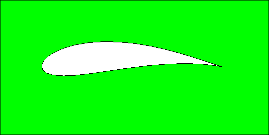 The process of creating a guaranteed quality mesh is illustrated in the following figures. The first figure illustrates the input. The boundary of the region is drawn in black, while the region for which a mesh is required is the area shown in green.