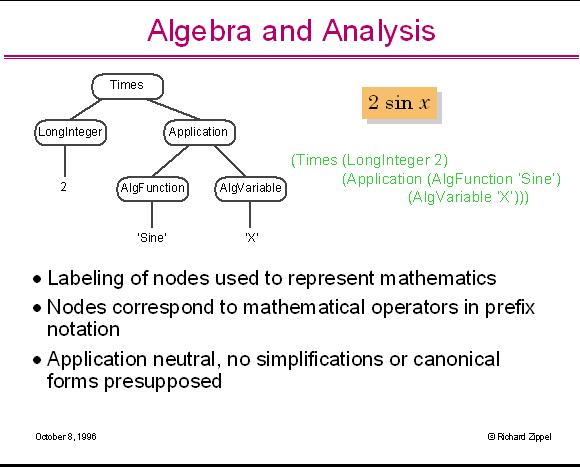A simple use of the term structure is to represent an algebraic expression. In this case, the term structure represents a parse tree of the algebraic structure with This is done by labeling the nodes in the term structure with the operators in the parse