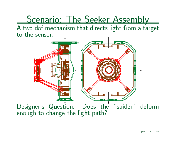 Before we look at the general problem of representing engineering analyses, let's look at a specific example of an engineering analysis - in this case an analysis of the dynamic and elastic properties of the MADEFAST seeker assembly.