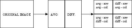 For watermarking, the two-dimensional Haar transform discussed above was generalized for an arbitrary number of decompositions. Whereas the two-dimensional transform works on a 4 x 4 block of pixels, the Lth level decomposition works on a 2n x 2m image. Any odd pixels on the borders are ignored. For each pair of pixels, the average is stored in the first half of the row or column, and the difference is stored in the second half of the row or column. Again, we take the transform in two directions - first along each row, then along each column. After this step, we have stored all the averages in the upper left-hand quadrant of the image: