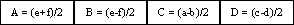(a+b)/2 and f = (c+d)/2.