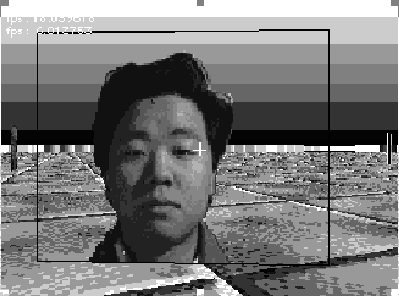 The segmented image is encoded in the final bitstream by defining pixel value 0 to be background (i.e., transparent), and by changing foreground pixels with value 0 to 1. A flag in the auxiliary data stream indicates that the stream is segmented. This encoding gives us backwards compatibility with regular CU-SeeMe clients. Figure 7 shows a sample screen shot with segmentation active.