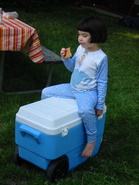 0607 -- Rotem with the Cinderella pajama on the cooler