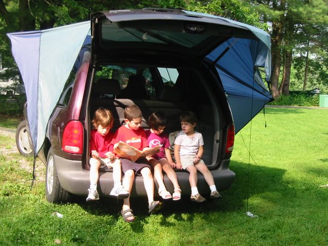 0607 -- Imri reads a story to the other kids, while the tent is drying on the car