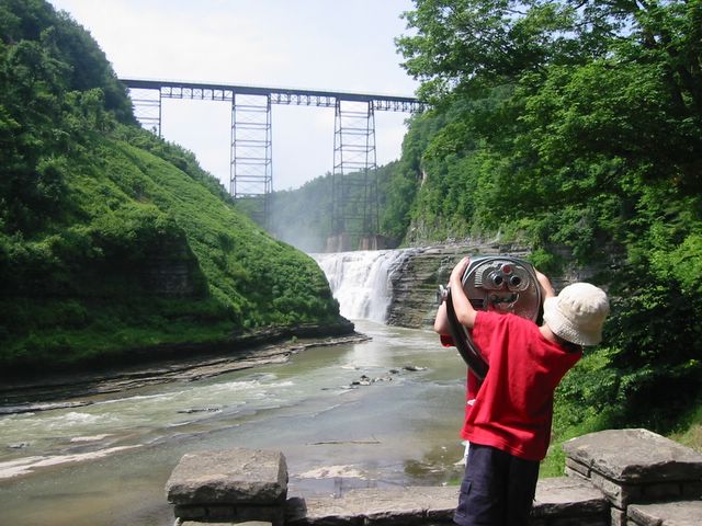 0607 -- Letchworth state park, NY -- the upper falls and the train bridge