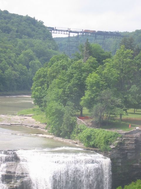0607 -- Letchworth state park -- a traing passing by on the bridge