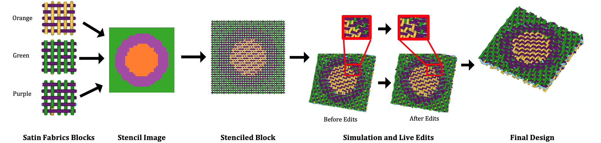 We present Weavecraft: an interactive, simulation-based design tool for 3D weaving, an emerging technology for manufacturing multilayer woven textiles. Unlike existing textile software that uses 2D representations for design patterns, we propose a novel weave block representation that helps the user to understand 3D woven structures and to create complex multi-layered patterns. With Weavecraft, users can create blocks either from scratch or by loading traditional weaves, compose the blocks into large structures, and edit the pattern at various scales. Furthermore, users can verify the design with a physically based simulator, which predicts and visualizes the geometric structure of thewoven material and reveals potential defects at an interactive rate. We demonstrate a range of results created with our tool, from simple two-layer cloth and well known 3D structures to a more sophisticated design of a 3D woven shoe, and we evaluate the effectiveness of our system via a formative user study.